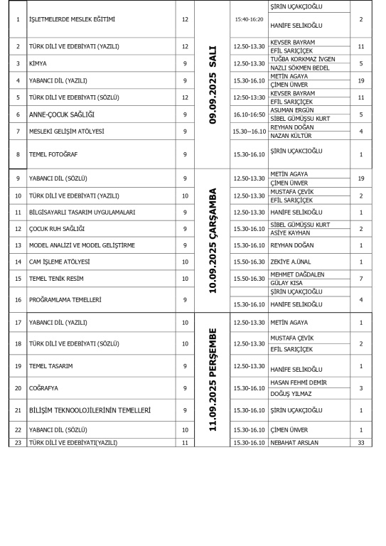 2025-2026 GÜZ DÖNEMİ SORUMLULUK SINAV ÖĞRENCİ LİSTESİ